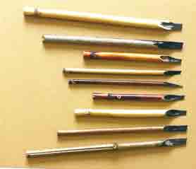 بعد ذلك يتعلم المبتدئ كيفية مسك القلم، بثلاث اصابع ممدودة. وبأي اتجاه يأخذه منقارالقلم على الورقة، ومنقار القلم لابد أن يكون منحنيا بما يقارب ال 45 درجة نسبة إلى الخط الأفقي للورقة.